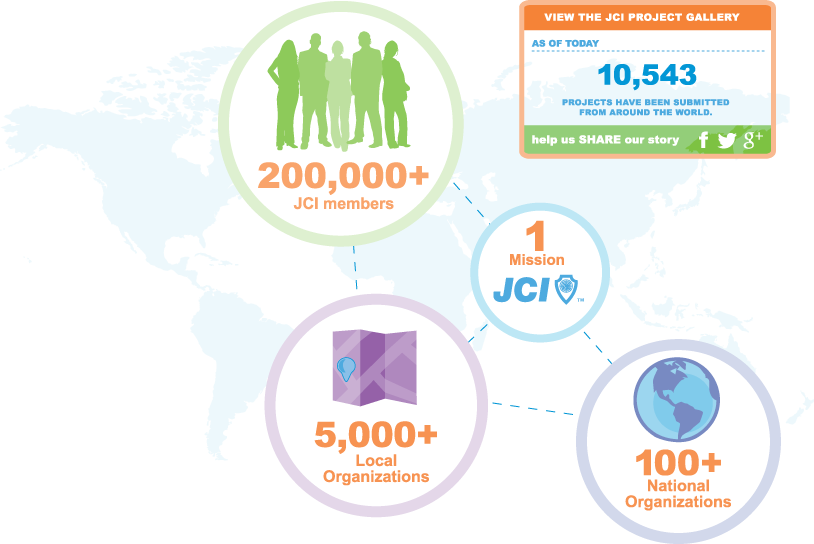 With around 5,000 local organisations in more than 100 nations, JCI forms a vibrant global community of nearly 200,000 young people. The collective action of all JCI local organisations forms a global grassroots movement, empowering members to run effective projects, exchange ideas and work together.